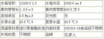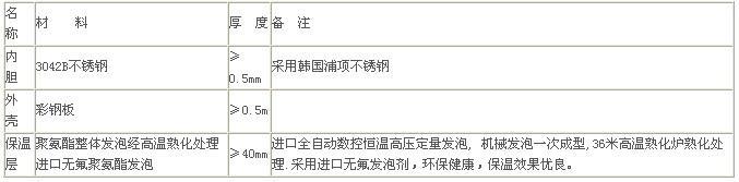 3、保温水箱主要参数表: