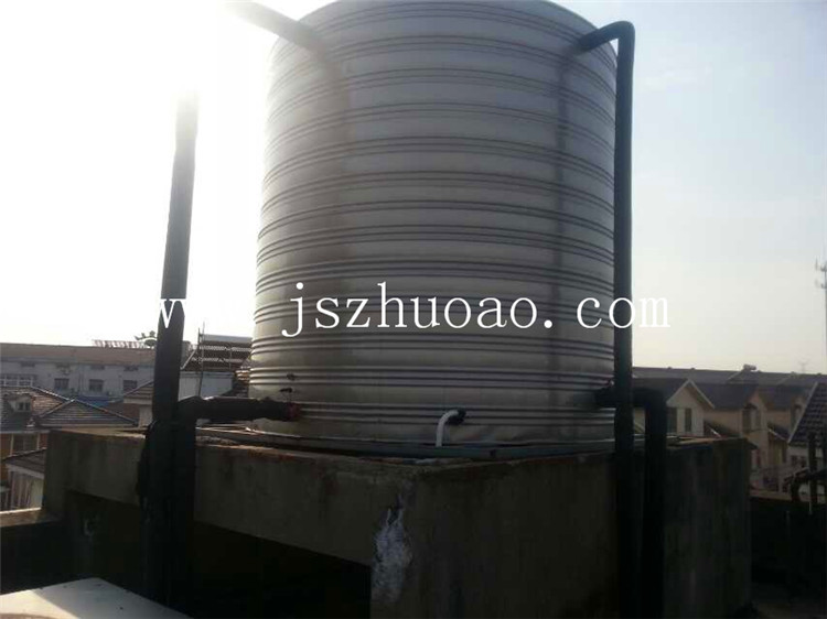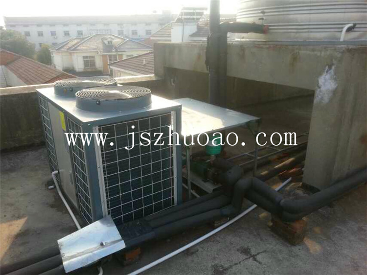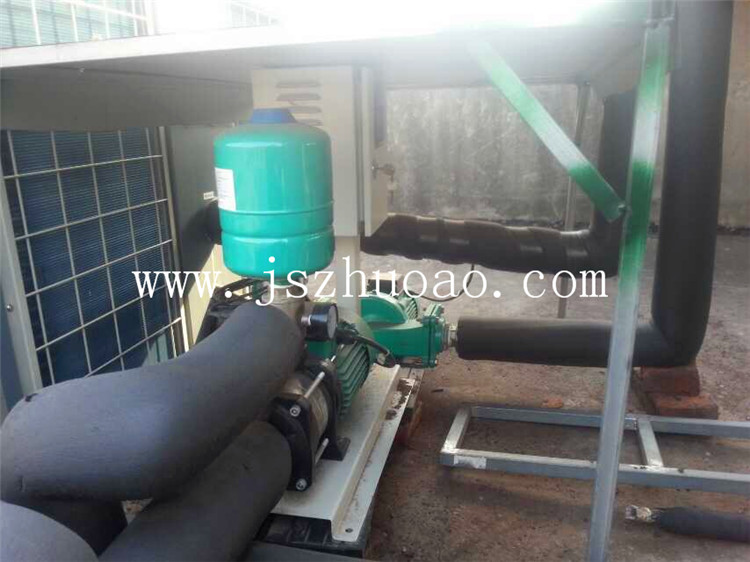 工程介绍:1台10匹空气能,1台5吨不锈钢保温水箱,24小时恒温恒压提供热水。